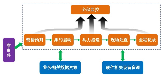 是指揮調度的核心和靈魂,提供強大的指揮調度和應急處置能力,主要由警力報備、動態巡防、指揮調度、預案管理、警情研判、考核統計等模塊組成。