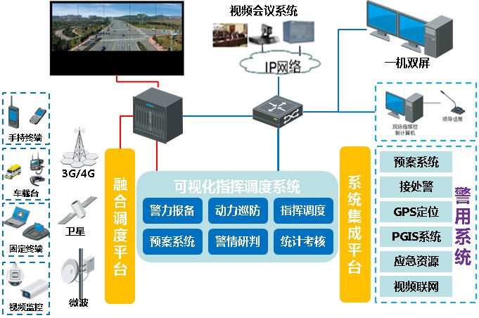 各級公安機關指揮中心在工作中不斷總結經驗,不斷提高指揮體系的實戰能力,逐步形成省、市、縣公安指揮體系三級聯網。為完成常態接警處警、重大案件偵辦、突發事件處置、安全保衛、災情救助等,對公安機關快速、有效的指揮調度保障體系統提出更高的要求。